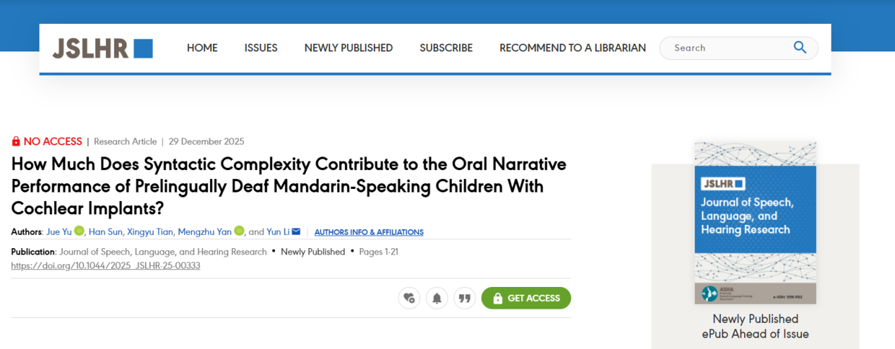 2025-12-22赵信娴、Aine Ito、杨小虎:Contributions of Language-Specific and Domain-General Cognitive Abilities to the Comprehension of Focus Prosody in Jianghuai Mandarin: Effects of AgeAbstract A growing body of research has explored the cognitive factors influencing aging adults’ recognition of spoken words and phrases. In contrast, research on the cognitive contributions to speech prosody comprehension in tonal languages across adulthood remains relatively limited. This study aimed to bridge this gap by investigating the contributions of language-specific and domain-general cognitive factors to focus prosody comprehension performance among aging speakers of Jianghuai Mand