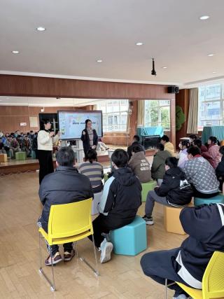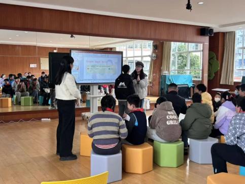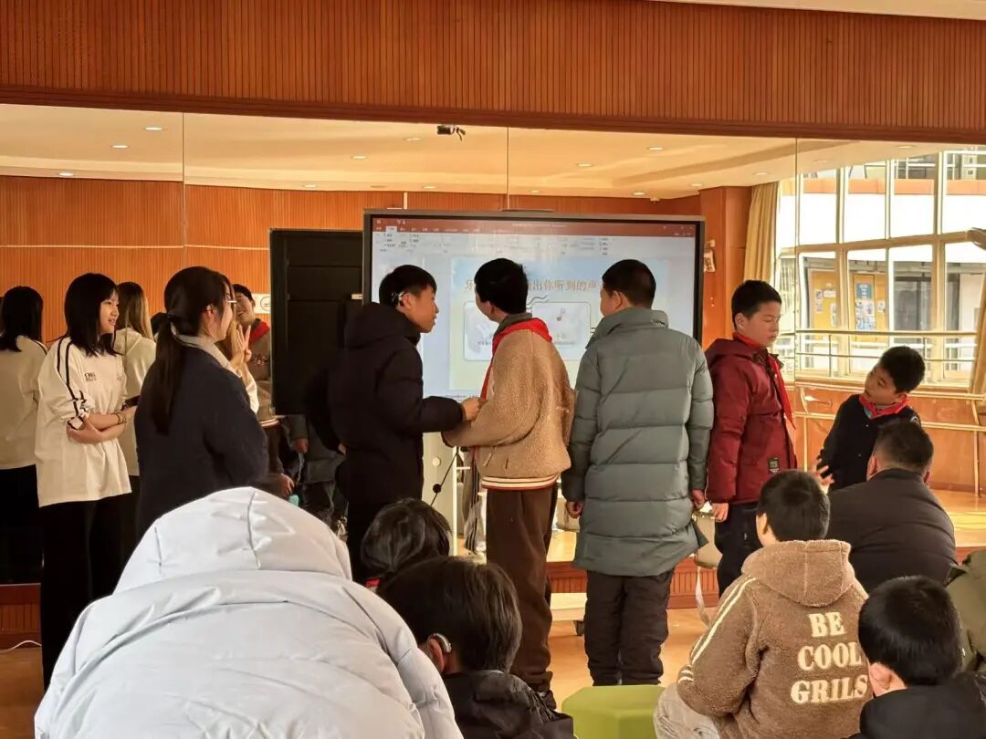 讲解过后,益语团队的同学们结合自身所学的专业内容,精心设计了趣味问题与孩子们互动问答。孩子们积极思考、踊跃回应,在一问一答中巩固爱耳、护耳知识,种下科学守护听力的种子。